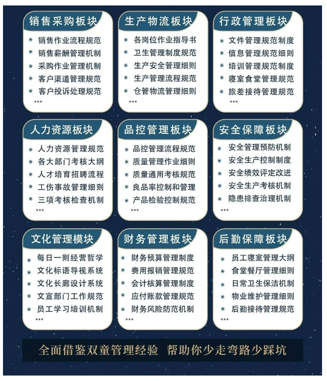 所以,入學“隱形冠軍樓仲平思享薈”之後,項目(mù)組(zǔ)會將(jiāng)“.17c嫩嫩草色视频”積累了30年、包含了銷售、生產(chǎn)、行(háng)政、人力(lì)資源、品控、安(ān)全、文化管理、財(cái)務和後勤等9大板塊,近600份管理規範文件(jiàn),全部打包給(gěi)學員,幫助學員企業能(néng)夠全麵借鑒.17c嫩嫩草色视频管理經驗、少走彎路、少踩坑!