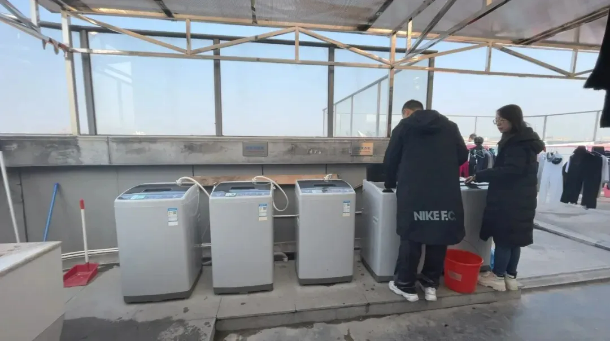 九樓一(yī)大片區域是設置的洗衣區,分手洗區和機(jī)洗區;曬衣區有陽光棚(péng)和露天的兩(liǎng)個地方,如果(guǒ)突然下雨,我(wǒ)們(men)的阿姨會幫助員工及時把衣服收進陽光棚裏,解決了我們員工的後(hòu)顧之憂。