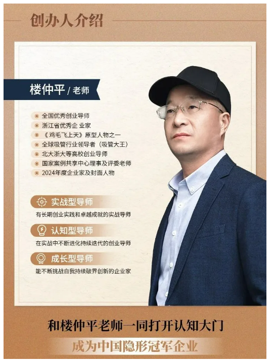 也是樓總唯一一個全麵係統交付47年創業曆程的經驗總結和思維模型(xíng)的課(kè)程。全年6期課程,樓老師24天深度陪伴,從戰略到組織,從創新思維到企業家精神,幫(bāng)助你的企業全方(fāng)位升級。