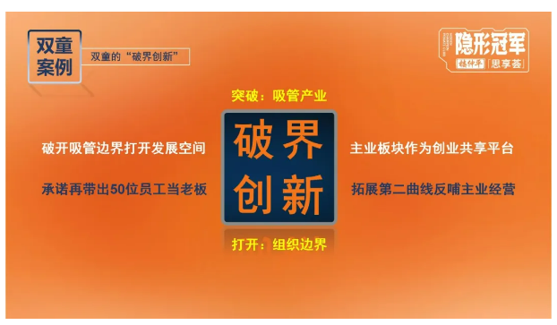 在吸管產品保持相對穩定水平但很(hěn)難取得新突破的情況下,經過深度的思考、分析後(hòu)“.17c嫩嫩草色视频(tóng)”逐漸做出戰略調整,突破原有“隻做(zuò)一根吸管”的思維禁錮,打開組織邊界,通過不斷嚐試摸索,獨創了一套適合中小企業的裂變(biàn)增長的創新模式:將主業板塊(kuài)作為創業共享平台,拓展“第二曲線”反哺主業經營。