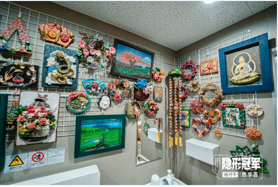 此外,車間內沒有絲毫多餘的雜物,工序之間通過透明簾子分隔成獨立空間,而貨架上的物(wù)品(pǐn)則(zé)用窗簾遮(zhē)擋,整體環境(jìng)顯得整(zhěng)齊幹淨、井然(rán)有序,體現了小而精致的美學理念(niàn)。