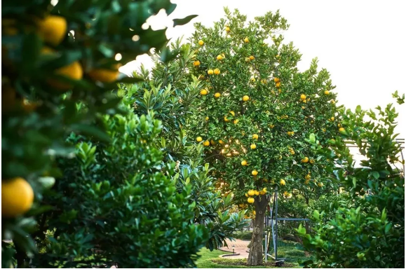 空中花園的(de)果樹在有(yǒu)機肥(féi)的作用下掛果率極高