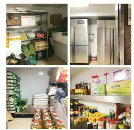 其中采購入庫的魚、肉等易腐爛變(biàn)質的(de)葷菜必(bì)須分區妥善(shàn)保存在冰箱中,新鮮蔬菜與米、麵等主食(shí)原料分開存放;除了常規的食(shí)材分開存(cún)放外,食用油、大米、麵粉、麵(miàn)條、調味料等食材(cái)消耗(hào)品,進行分類、分(fèn)架、隔牆(qiáng)、離地存放。