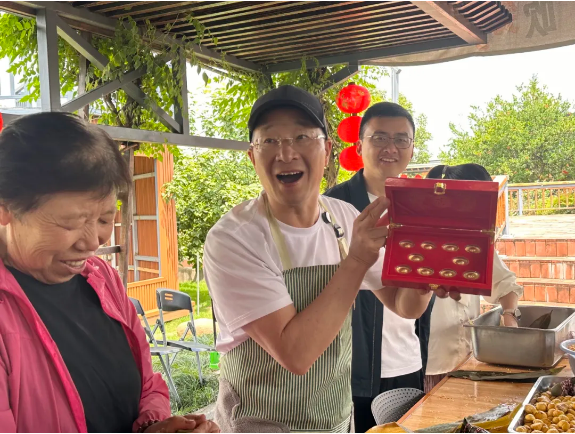 正好也到飯點了,大家也絲毫不(bú)拘謹,大口大口吃著粽子,不到一分鍾的時間,現場幾乎同(tóng)時出現了好幾個吃到黃金粽的幸運星!
