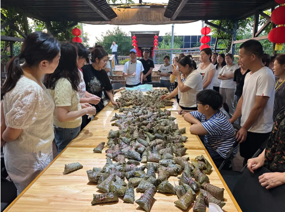 由於各個崗位的年輕人都(dōu)沒有(yǒu)親自做過粽子,手忙腳亂地做出來的粽子始終不成(chéng)型。樓總便趕忙邀請了他的幾位親戚(qī)過來做“指導老(lǎo)師(shī)”,現場手把手傳承(chéng)包粽子手藝。