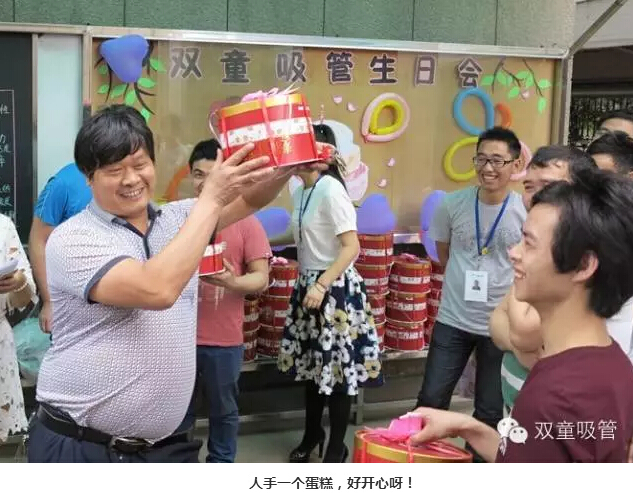 7、辦在宣傳(chuán)欄前的生日會,除了人手一個必備的生日蛋糕以外,我們還組織了(le)“二人三足”的小遊戲,獲勝者能得到我們精心準(zhǔn)備的獎品!拿著小蛋(dàn)糕,可以和寢室的(de)室友們一(yī)起分享生日的喜悅,也是不錯的哦!