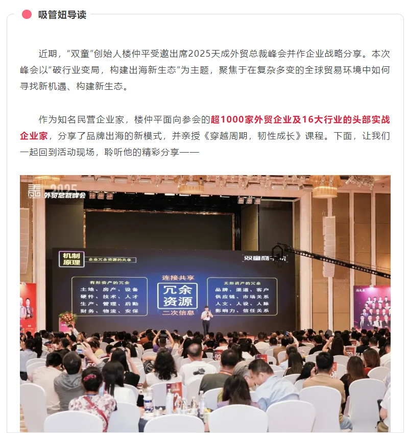 @樓仲平(píng) 受邀2025天成外貿總裁峰會!為超1000位創業者(zhě)分享冠軍企業的“韌性成長”之道!
