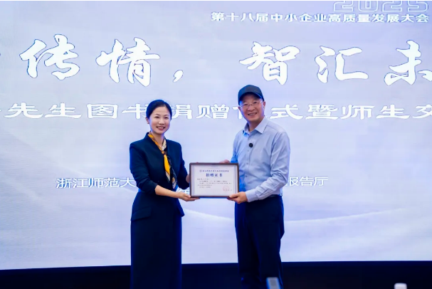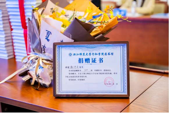 頒(bān)獎儀式結束後,浙江(jiāng)師範大學行知學院舉行了“書香傳情,智匯未來”圖書捐贈儀式。儀(yí)式上,學(xué)院圖書館館長吳建軍、浙江師範大學行知學院副院長蔣芬君共同代表學校,接受樓(lóu)仲平捐贈的300本個人自傳《韌商》,並向他頒發捐贈(zèng)證書。校方表示,這些書籍將部分上架供師生(shēng)借(jiè)閱,部分用於院史館展出和地方特藏庫珍(zhēn)藏,以期充分發揮其傳播與珍藏價值。一時間(jiān),現場掌聲如潮,氣氛熱烈。