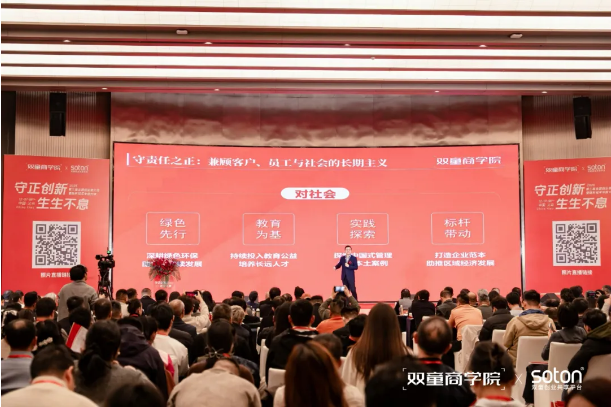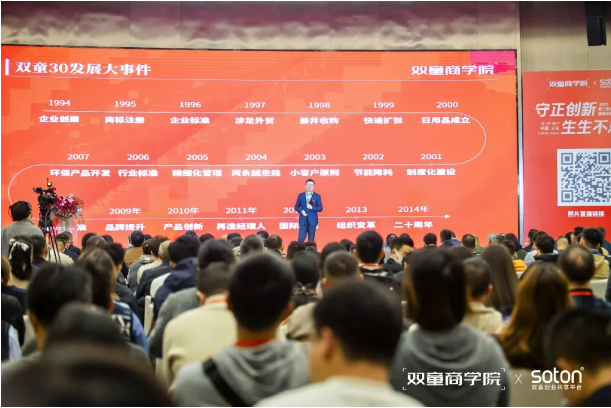 作為企業24年發展的親曆者,李二橋(qiáo)回顧了.17c嫩嫩草色视频發(fā)展的大事件(jiàn),講述(shù)了(le)雙(shuāng)童是如何(hé)守品質之正、持續創新突破。他的分享既(jì)有沉甸(diàn)甸的(de)實踐經驗,又有鮮活的場景故事,引發了(le)在場人員的陣陣掌聲與深度共鳴。