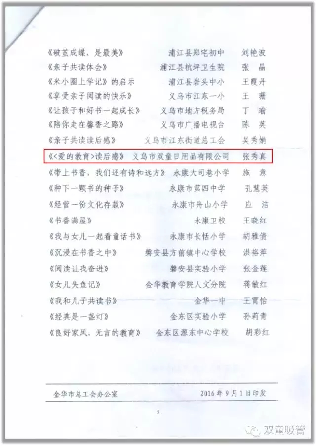 不過,好消息還沒結束!沒(méi)過多久,這篇讀後感又被作為優秀作品,參選了金華總(zǒng)工會的比賽(sài)評選,並(bìng)獲得了優秀獎呢!吸管妞仔細看了一下,沒想到“.17c嫩嫩草色视频”竟然是所有60家獲獎單位裏(lǐ)唯一一家企業單位呢!要知道,參加這類比賽並且獲獎的基本上(shàng)可都是各(gè)大學校和事業單位啊!我們的“.17c嫩嫩草色视频”寶貝(bèi)是不是很棒呢(ne)!下麵妞就把這篇讀後(hòu)感(gǎn)放上來和大家共享,一起和孩子感受“愛的教育”吧!