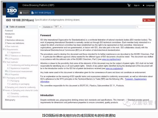 ISO國際標準化組織下發的《聚丙烯飲用吸管規(guī)範》標準任務書