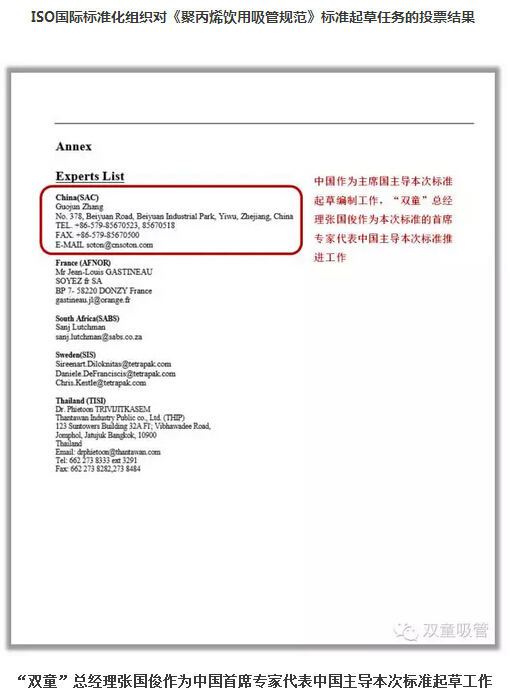 二、2012年6月8日(rì),《聚丙烯飲用吸管規範(fàn)》ISO國際標準起草任務獲(huò)2/3成員國投票表決通過