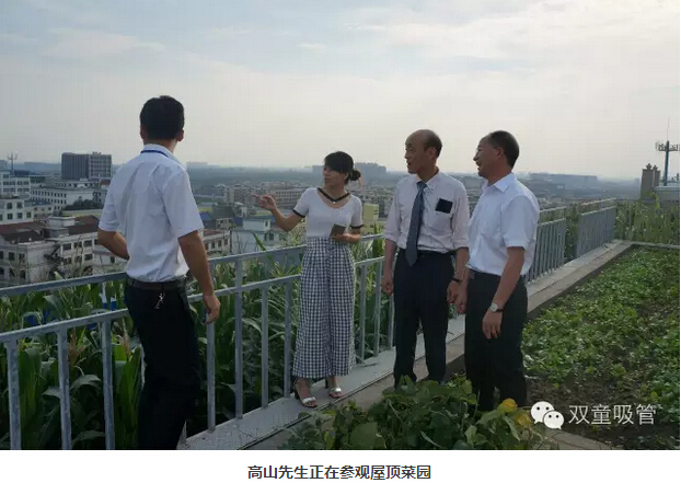 移步九樓菜園(yuán),高山先生立即被菜園子裏的(de)蔬菜吸引了,在工(gōng)廠(chǎng)還有這麽一片(piàn)靜(jìng)地,實在另人(rén)讚歎(tàn)!聽到“空中菜園”有(yǒu)近800平方米的,每個種植區的土層均有1米2深,高山先生更是讚不絕口!