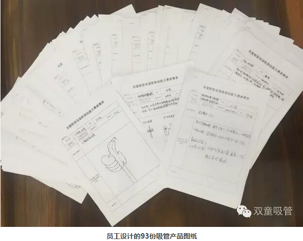說到(dào)企業創新工作時(shí),當家人樓總表示我們的很多吸管創意都來源於員工,並向高(gāo)山先生展(zhǎn)示(shì)了我們曆年來做的創(chuàng)新大賽的作品成果,看到這麽多來自員工們獨特的創意(yì),高山先生非常驚訝“雙(shuāng)童”員(yuán)工的創造(zào)力和想象力!