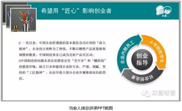 最後,當家人樓總希望將一根吸管做好的“匠心(xīn)”能夠(gòu)影響他人,影(yǐng)響創業者們不(bú)能急功近利,一定(dìng)要(yào)做在(zài)質量上堅守底線。同(tóng)時引導員工(gōng)成為產業“匠人”,通過硬件的提升、學習會等方(fāng)式潛移默化地影響(xiǎng)員工做(zuò)出(chū)更(gèng)好的產(chǎn)品,把員工們打造成一流的員工(gōng)。當家人樓總也和多所(suǒ)院校建立校企合作關係,開展創新大賽等活動,同時在企業內部創(chuàng)建教育實踐基地和創業者們進行互(hù)動交流。