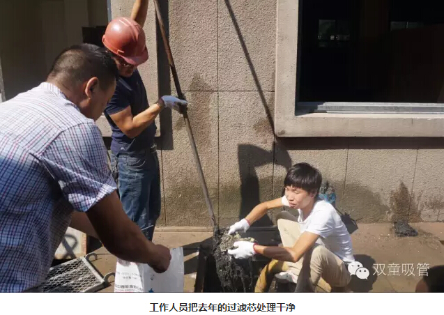 而過濾池中的過(guò)濾芯每年都要進行定期(qī)更換,今年當然也不例外。必須先將去年的埋下的(de)過濾芯全部處理幹淨後(hòu),才能放入新的過濾芯!