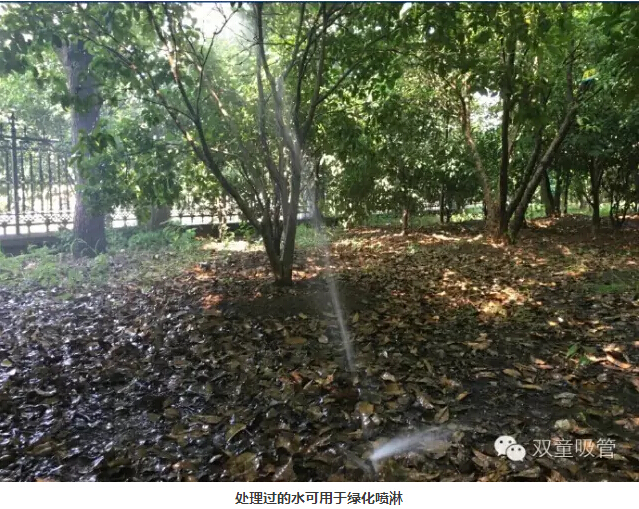 最(zuì)後(hòu)經過(guò)處理的水就已經達到了三類水的標準,中水通過設在池(chí)中的抽水泵打到屋頂,專門(mén)用於宿舍衛生間(jiān)的馬桶衝水、綠化澆灌和道路清洗。