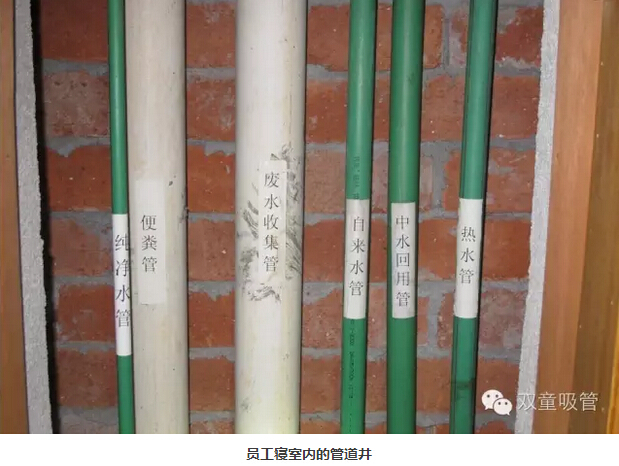 一路(lù)水管是自來(lái)水,給員工洗漱用;一路水(shuǐ)管(guǎn)是純淨水,給員工直(zhí)接飲用;一路水管(guǎn)是從車間輸(shū)送過來的(de)50度左右的(de)“冷卻水”,給員工洗澡用;一路水管是員工洗澡洗臉用後的汙(wū)水,經過過濾淨化後流到(dào)中水池;一路水管是中水池的水,供員工衝(chōng)馬桶用;還有一路水管是(shì)衝洗馬桶後的汙(wū)水,直接排出。看到這些細節,老師們也是嘖嘖稱道,為當家人(rén)樓總(zǒng)超前的理念折服。
