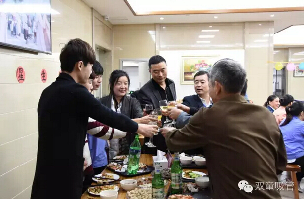 吃喝,吃喝,光吃不(bú)行還得喝!“酒水飲料”自然是調節氣氛的最佳,五星級食堂舉辦的第一次生日會,自然要幾位“五星級的領導”陪同!你看啊,各(gè)個車間的主要領導都來了(le)啊!他們的宗旨就是:一定要讓壽星們不光吃的好(hǎo),還要(yào)喝的盡(jìn)興!領導們端著酒(jiǔ)杯笑嘻嘻的對每位(wèi)壽星(xīng)說:“沒事,喝嘛,喝醉了明天(tiān)啥時(shí)候起來,啥時候上班!” 壽星們(men),你們還(hái)不趕緊放開了量,爭取也灌倒一兩位領導啊!!!