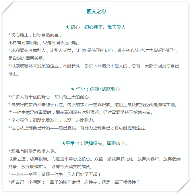 摘(zhāi)選部分筆記,濃縮的語句後是(shì)豐厚的經驗(yàn)和感悟,值得思索。在看我的筆(bǐ)記之前,不妨想一想,然後寫(xiě)下你對這樣幾個概念的理(lǐ)解:商業本質;匠人之心。閱讀中再與樓總所說對照(zhào)思(sī)考,收獲會更多。