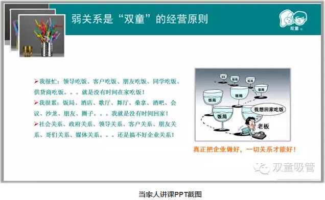 另一方麵,在(zài)當家人樓總離開(kāi)企業(yè)的時(shí)候(hòu),無論是一個禮拜、一個月、甚至一(yī)年半載的時間,員工都不會打(dǎ)電話給他。企業內部的事情都有專人處理,做到了徹底放權,企業也不(bú)會因此受到影響(xiǎng),反而當(dāng)家人樓總現在以企業內部教育和外部講課為主!