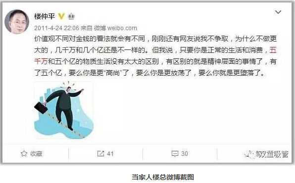 沒錢談不上自由,但有錢也(yě)未必自由。原始積累很重(chóng)要(yào)!當家人樓總幾(jǐ)年前發的一條(tiáo)微(wēi)博道出了(le)他的看法:價值觀不同對金錢的看法就會有不(bú)同,其實隻要你是正常的生活和消費(fèi),五千萬和五個億的物質生活(huó)每月不會(huì)有太大的區別,有區別就是精神層麵的事情了,有(yǒu)了五個億,要(yào)麽你就更(gèng)高尚了,要麽你是(shì)更放蕩了,要麽你就是更墮(duò)落了。