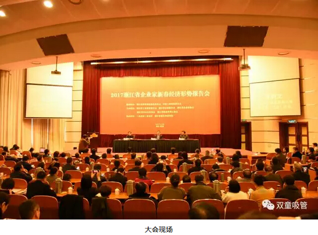 2月16日上午,“2017浙江省企業家新春經濟形勢報告會”在杭舉行,吸管妞和吸管君也趕赴杭州參與了此次會(huì)議。原國家工信(xìn)部部長、全國政(zhèng)協(xié)常委李毅中、浙江省副(fù)省長馮飛、省政協副主席兼省總工會主席張蔚文等出席了本次活動。