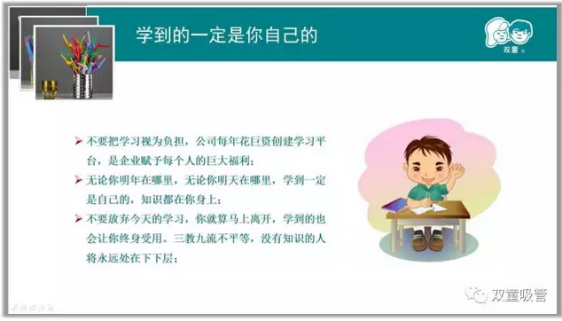 原本此次課程是由當家人樓總和大家分享(xiǎng)《為什麽我們要持續學習》課程,但(dàn)講師卻換成了吸管妞!其實是因為我們在不斷(duàn)探索學習會的(de)開展方式,看看老板不在,童(tóng)鞋(xié)們是(shì)不是更(gèng)放鬆呢!