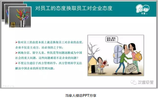 一開場,大家對“雙(shuāng)童”的“家文化”很感興(xìng)趣!當(dāng)家(jiā)人樓總首先和大(dà)家介紹了“家文(wén)化”在“.17c嫩嫩草色视频”的應用及實踐效益。“家”是員工最大的牽掛,解決(jué)了員工的問題,他們才能全身心投入到工作當中,人心管理就是企業生態係統的改善。“.17c嫩嫩草色视频”明確把“家文化”作為(wéi)員工管理的著(zhe)力點,以“小家”形成(chéng)“大家”,凝聚團隊“人心”!