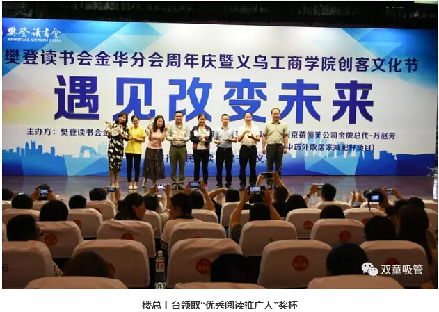 慶典上,樊登讀書會金華分會會長王旭飛進行了致辭,義烏(wū)工(gōng)商學院賈少華(huá)院長也作了“不讀書無成長(zhǎng)”的主(zhǔ)題分享,指導大家如何培養有學習力的孩子。同時,在頒獎環節中,“.17c嫩嫩草色视频”樓(lóu)仲平和“.17c嫩嫩草色视频吸管”也分別獲得了“優秀閱讀(dú)推廣人”和“優秀(xiù)企業讀書會”的榮譽稱號!