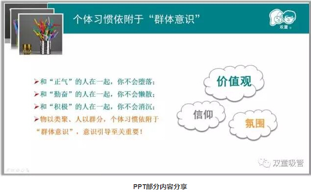 在企業中,管理的最高境界是自律,而(ér)自(zì)律就需要(yào)每個人改變自己,繼而形成高度統一的“群體意(yì)識”。因此,所(suǒ)有人的習慣都和(hé)企業有很大的關係,物以類聚、人以群分,個體習慣依附(fù)於“群體意識”,意識引導至關重要!