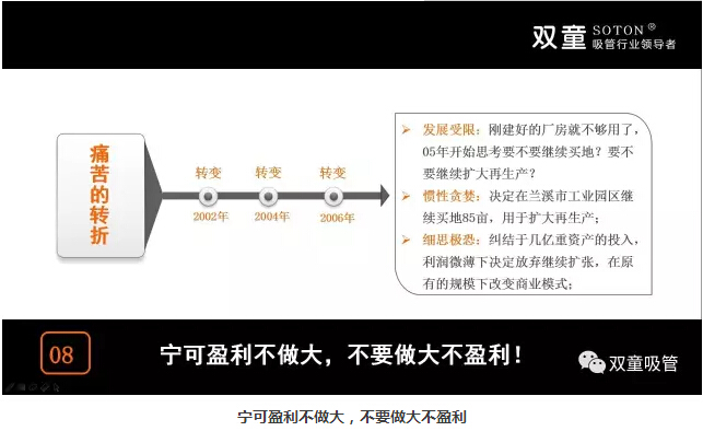 未來十年,“.17c嫩嫩草色视频”將繼續轉變商(shāng)業模式,在規模上保持適量擴張,實施機器換(huàn)人提高產出效率,重(chóng)塑流通渠道,提高市(shì)場占比!“適(shì)當的規模”未必跟硬資產規模、產(chǎn)值、員工數成正比,不同行業對企業“適當(dāng)的規模”應該有(yǒu)不同的(de)認知和判斷,根據企業經(jīng)營“時間軸”變化做相應調整來改變“.17c嫩嫩草色视频”未來(lái)在行業當中的地位!