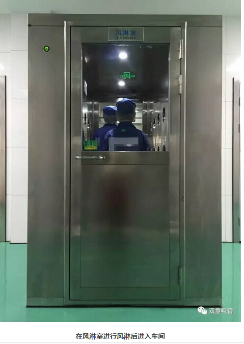 5、完(wán)成洗手消毒之後,要進(jìn)入風淋室進行風淋除塵。
