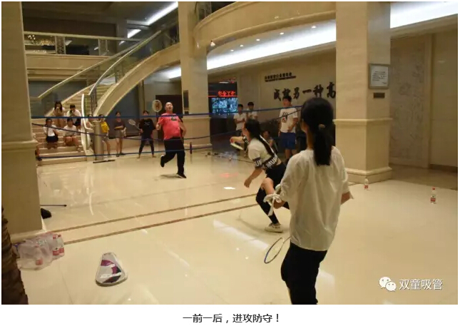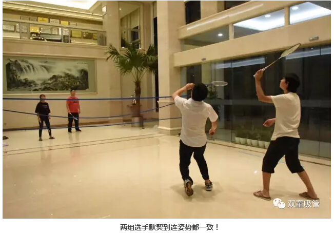 熱身結束,我們的比賽(sài)也正(zhèng)式拉(lā)開了帷幕!本次比賽以雙打模式展開,抽簽決定各自的隊友,然後進(jìn)行(háng)激烈的雙打比拚!瞧大家的陣勢(shì),一(yī)前(qián)一後,進攻防守,分工明確,配合的可(kě)真是(shì)默契(qì)十足(zú)!