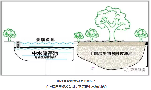 現在,改造後的中水景觀湖(hú)分為(wéi)兩層,上(shàng)層是一米多深的(de)景觀養魚(yú)湖,下層是四米五深的中水儲存池,專門用於(yú)儲存廢水呢!