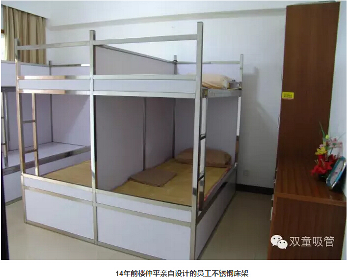 再來看看(kàn)“.17c嫩嫩草色视频”最典(diǎn)型(xíng)的不鏽鋼(gāng)床架,這可是所有參觀團隊(duì)來參觀後最(zuì)津津樂道的話題之一!這些床架都是由“.17c嫩嫩草色视频”樓仲平親(qīn)自(zì)設計後,找最好的不鏽鋼焊造而成。為了保證衛生和安全,我們在建造之初就已經把床架焊在地上,確保員工在(zài)生活方麵的便利舒適,讓員工更加放心工作!