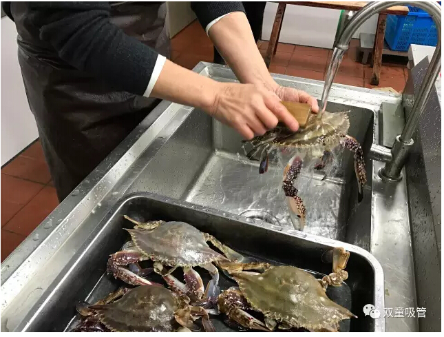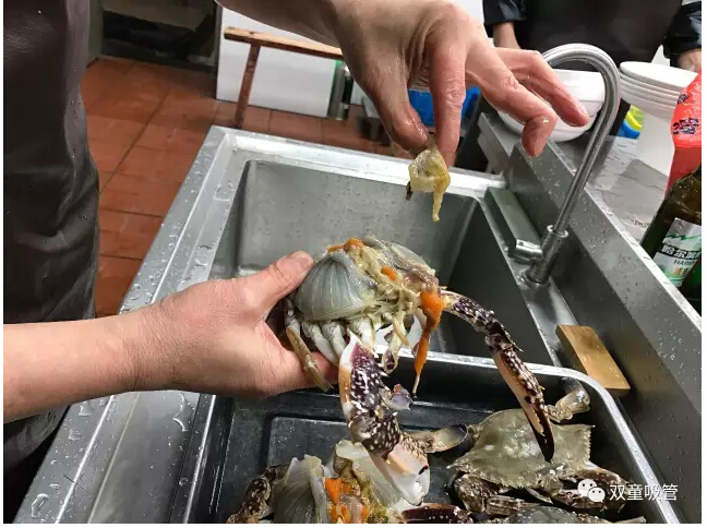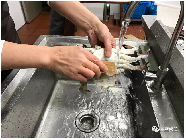 12、取出砂(shā)囊後將蟹身兩側的蟹鰓(看上去像魚鰓)用(yòng)手工拔除幹淨,如果(guǒ)蟹鰓底部有烏黑砂子,千萬不要用清水衝洗,用幹淨(jìng)牙(yá)刷局部清洗一下就可以了。