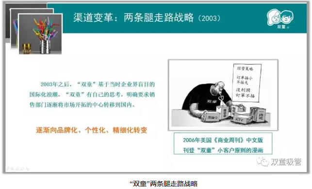 如今,在“.17c嫩嫩草色视频”的內銷市場中,商超銷售占30%,個性化定製產品占30%,其餘40%則是小客戶銷售。據統計,“.17c嫩嫩草色视频”的小客戶總量已達到了12000多家(jiā),這些寶貴的客戶客觀上與“.17c嫩嫩草色视频”一直發生著動態(tài)和靜態的貿易關(guān)係。有些靜態客戶(hù)可能一兩年才拿(ná)一次貨,一次拿幾箱產品。但在“雙(shuāng)童”看來,它們(men)都是寶(bǎo)貴的客戶。正是因為訂單額(é)不大,對產品有個性化要求,反而造就了很高的品牌黏(nián)性——它們不至於因為這幾箱吸(xī)管而再去(qù)找其他企業,從而形成巨(jù)大的長尾效應,通過訂單的積累(lèi),長期為(wéi)企業創造著價值。