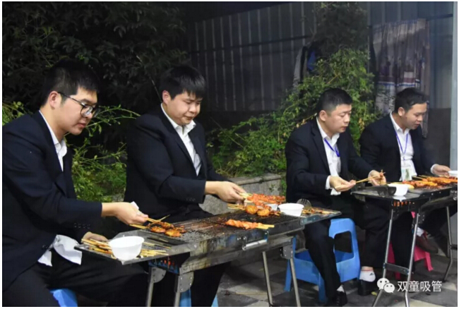 咦?車(chē)間管理們(men)也爭當起了“燒烤小販”,為壽星們進行服務。員工們喝著美酒吃著主管們烤的肉串,別提多開心啦!往往員工手上的還沒吃完,這邊(biān)領導們(men)就已經笑眯眯地把(bǎ)新烤好的肉(ròu)串奉(fèng)上了,吃都(dōu)來不及,這是什麽節奏?