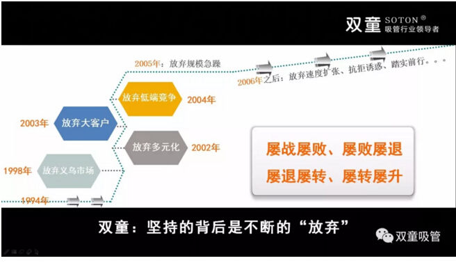 “.17c嫩嫩草色视频”堅持的(de)背後也伴隨(suí)著不斷的放棄,放(fàng)棄義烏市(shì)場、放棄多元化……2003年開始,“.17c嫩嫩草色视频”決定放(fàng)棄繼(jì)續擴張,放棄低端競爭,在(zài)原有的規模下改變商業模式,寧可盈利不做大,不要做大(dà)不盈利。但“.17c嫩嫩草色视频”堅持的是實業、是事業、而非某個(gè)單一產品!這個世界的發展是多元(yuán)的,存在既有(yǒu)道理:也許(xǔ)五年十年後,“.17c嫩嫩草色视频(tóng)”涉足其他領域已不再生產吸管!