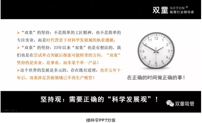 首先,樓總和創業者們分享創新需(xū)要“堅持觀”,他一開始出生就在極端貧困中,初中輟學,從14歲跟隨父親去(qù)江西“雞毛換糖”,在“雞毛換糖”的(de)過程當中(zhōng)勇於創(chuàng)新,持續折騰。在1979-1994年期間(jiān)做了二十多個行當,打工、創業,還養過魚,經過多次(cì)失(shī)敗後選擇沉下心來(lái)把一根吸(xī)管做(zuò)精、做細、做(zuò)強(qiáng)!